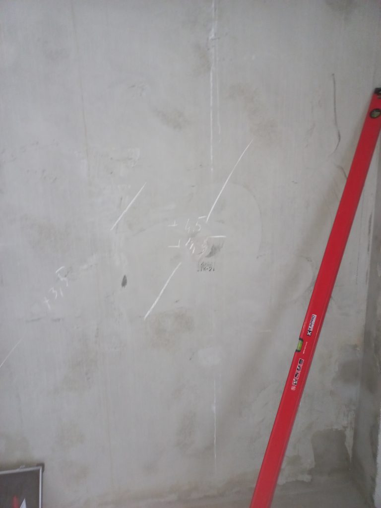 На стенах обнаружили, трещины и неровности и отклонения от вертикальной плоскости больше допустимых значений, раковины.