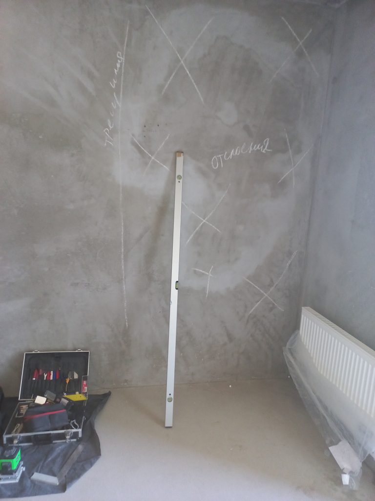 Выявили большое количество участков с отслоением штукатурного слоя.