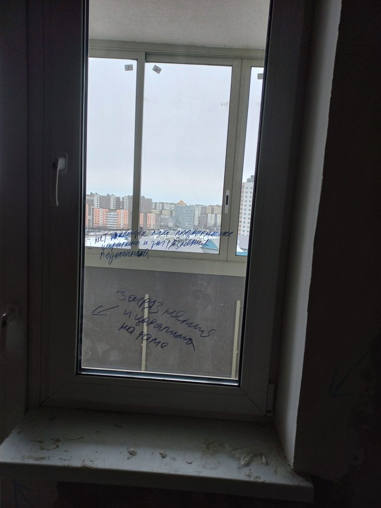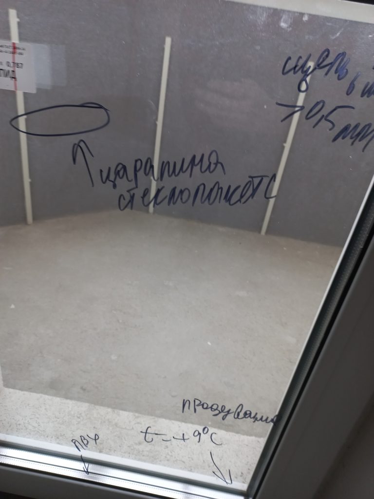 На окнах загрязнения и повреждения пластикового профиля, подоконников, отливов. Царапины на стеклопакетах. Окна не отрегулировали. Створки окон и дверей лоджии просели, открываются с заеданиями. Фурнитура работает не корректно. Сильное продувание через окна.