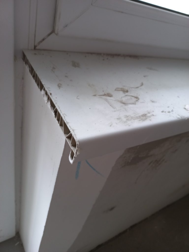 Отсутствуют декоративные накладки на подоконниках и дренажные колпачки. Гидроизоляцию отливов выполнили не везде.