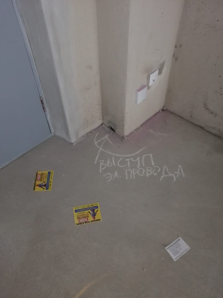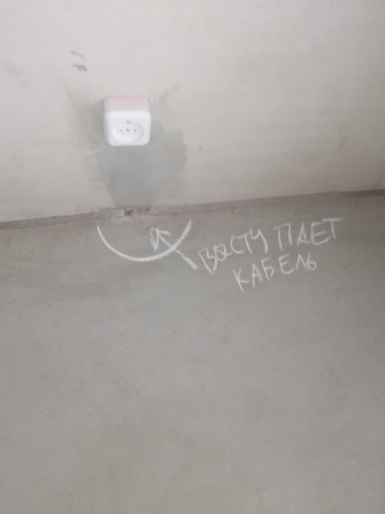 Электрический кабель выступает за плоскость стяжки пол и стен.