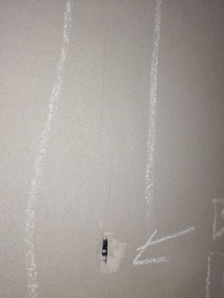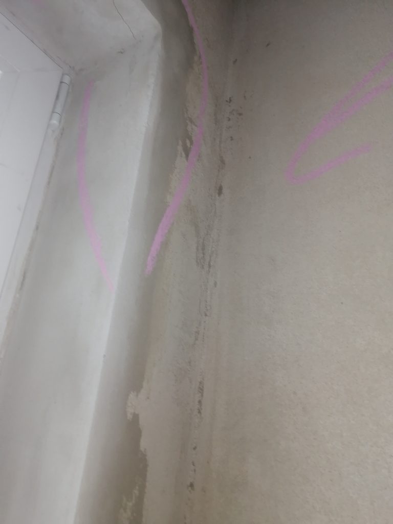 Далее осматриваем поверхность стяжки видим локальный неровности, превышающие нормативные значения. На стенах выявили отклонения от вертикальной плоскости, локальные неровности более допустимых. На стенах большое количество трещин. Представитель застройщика пытается убедить, что это в норме. Замеряем ширину их раскрытия и видим, что она более 0,2 мм и это не усадочные трещины на штукатурном слое. Рассмотрели трещины видим, что они не только в штукатурном слое, но и в конструкции перегородки. Ряд трещин пересекают перегородки по одной линии квартиры «разрезая ее на две части». Отразили это в акте.