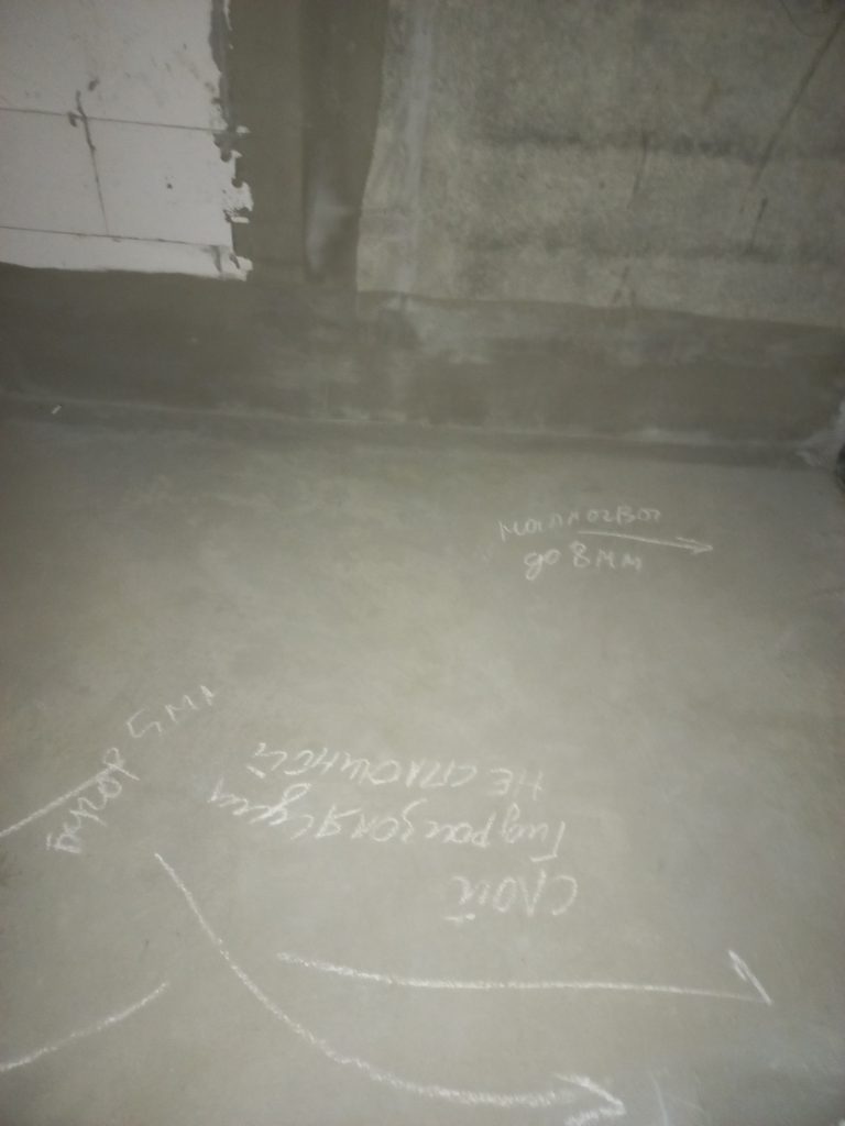 Стяжка пола тоже имеет локальные неровности, перепады и набрызги строительных смесей.