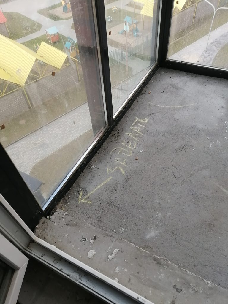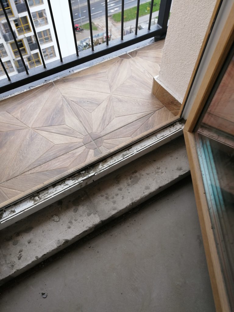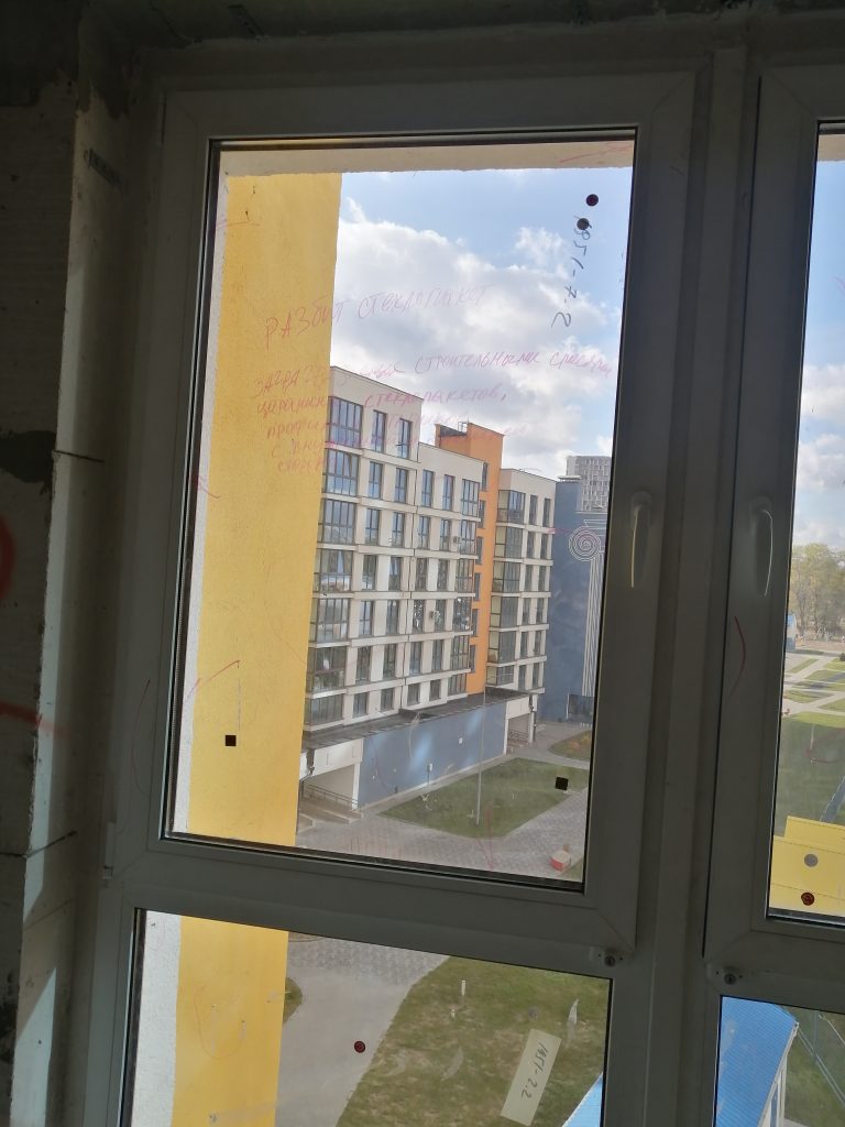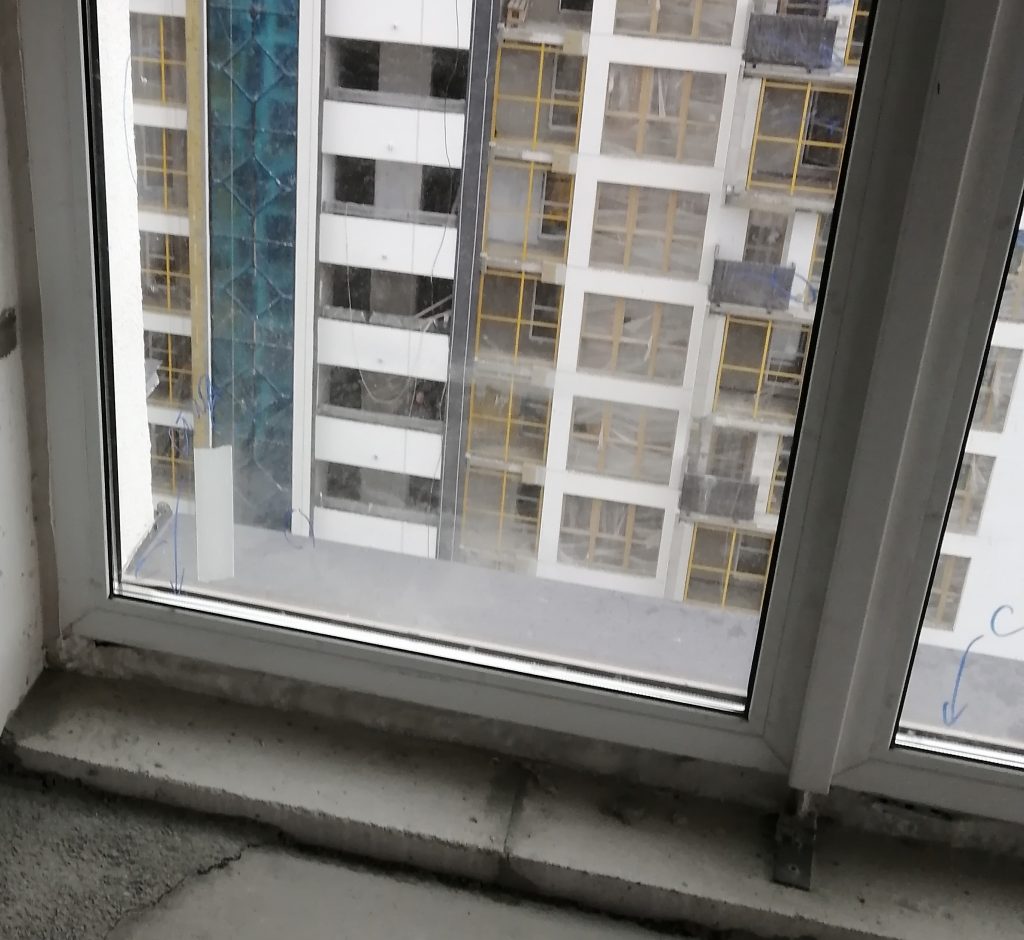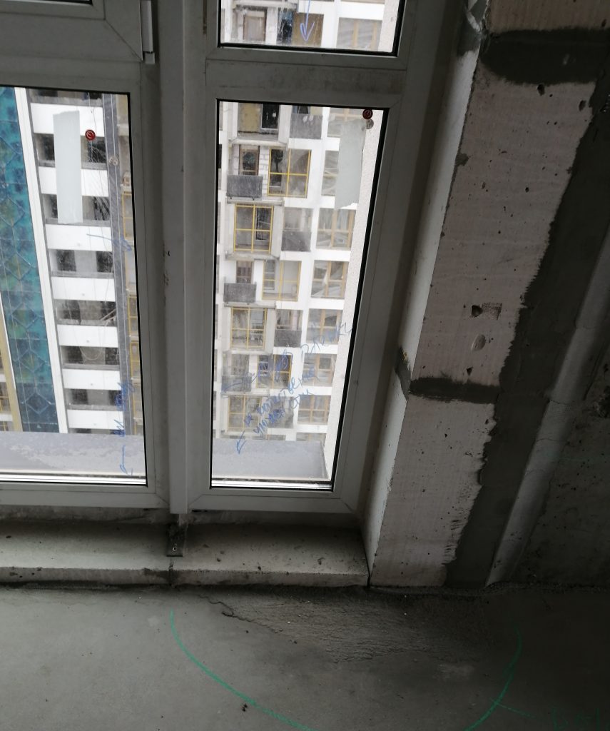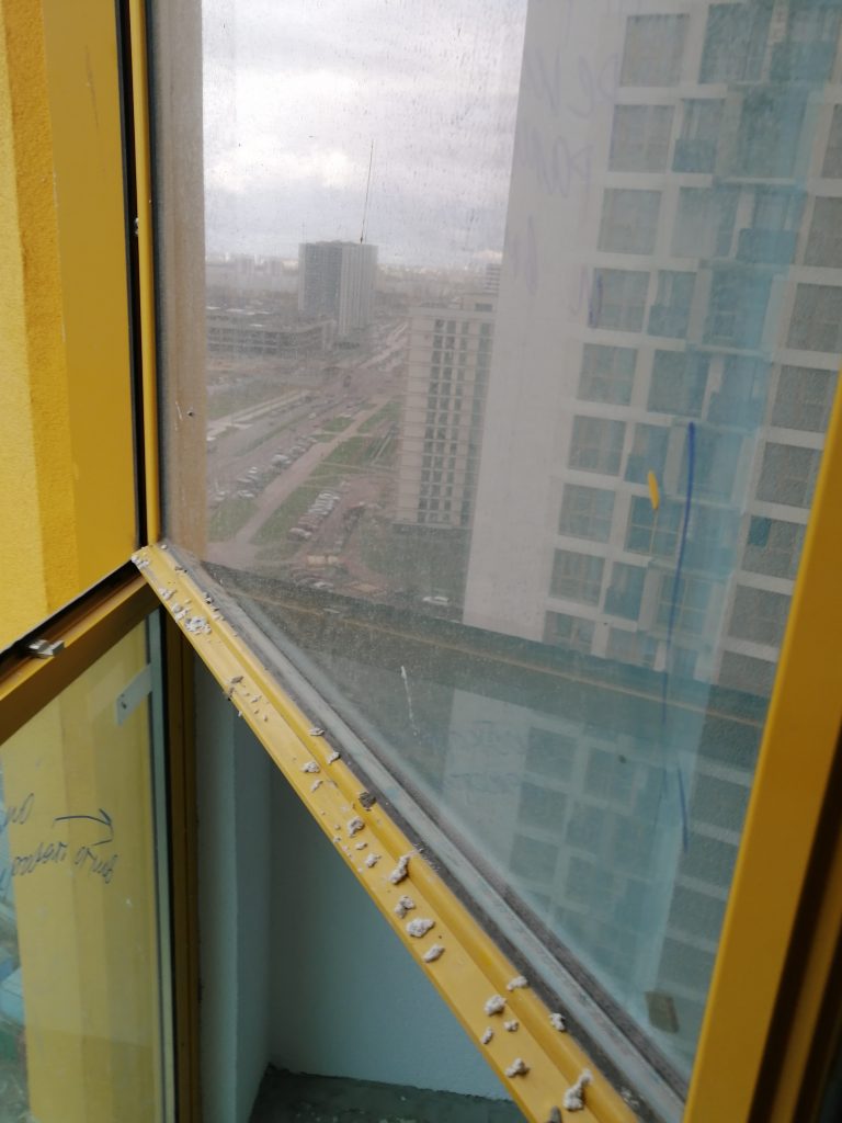 Хуже всего обстоят дела с окнами. Оконный профиль и ограждение лоджии имеют множество царапин и загрязнений строительными смесями.