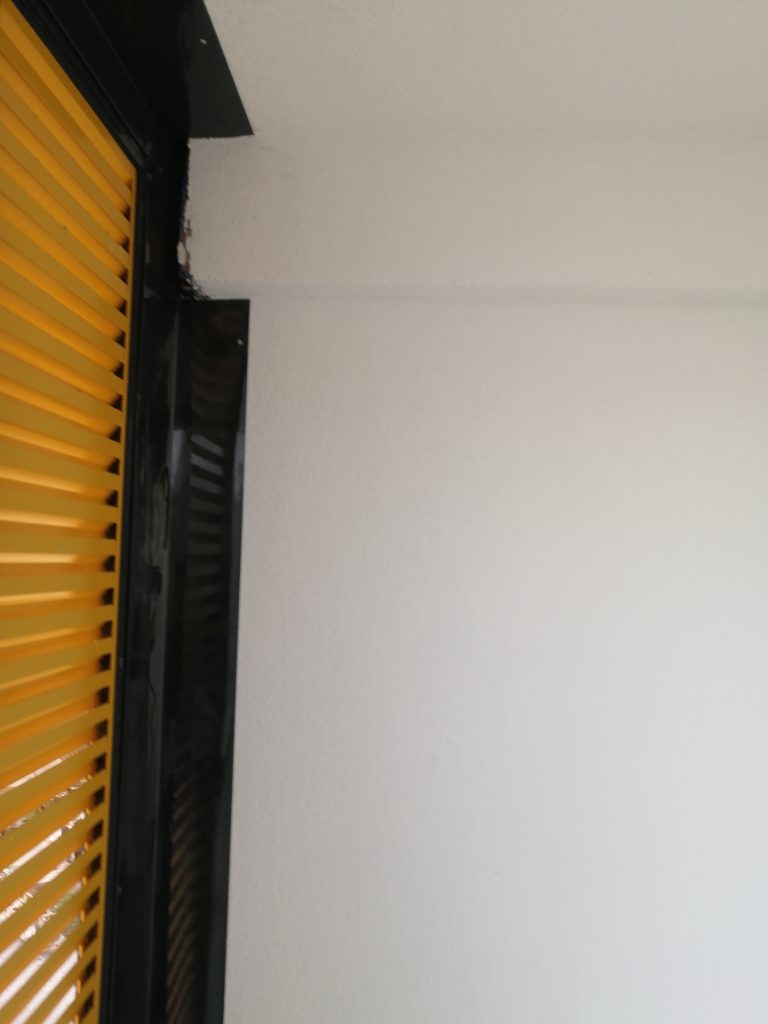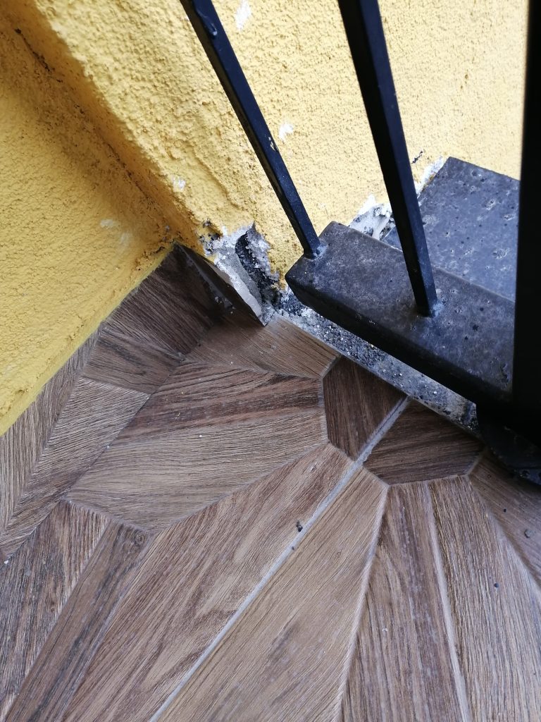 Ограждение французского окна со следами коррозии, раковинами и шероховатосями.