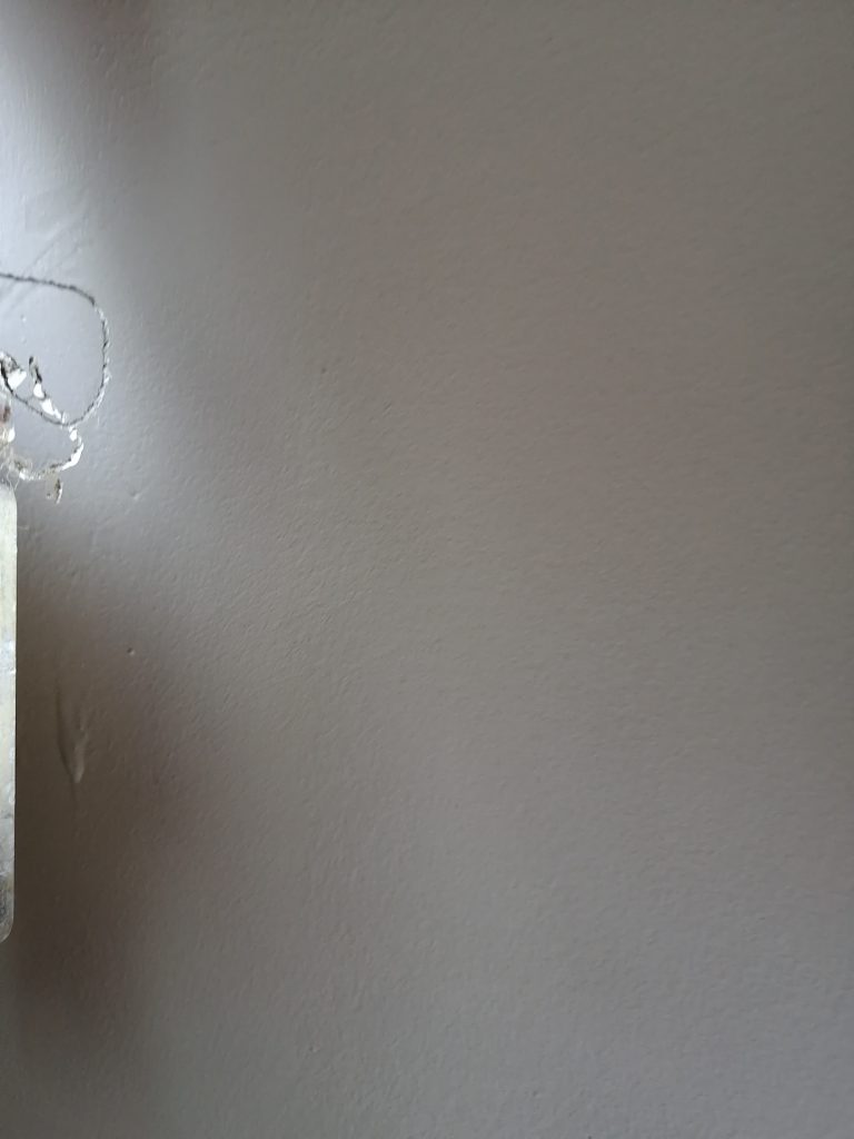 На окрасочном слое крупинки строительных смесей, участки «непрокраса». При производстве строительных работ допустили значительные отклонения от прямых линий на сопряжении поверхностей разных цветов.
