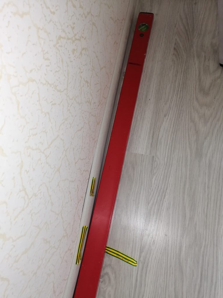 Осмотрели пол, выявили перепады и неровности, царапины напольного покрытия. Отклонения перегородок от горизонтальных осей. При попадании света из окна эти неровности подчеркиваются.