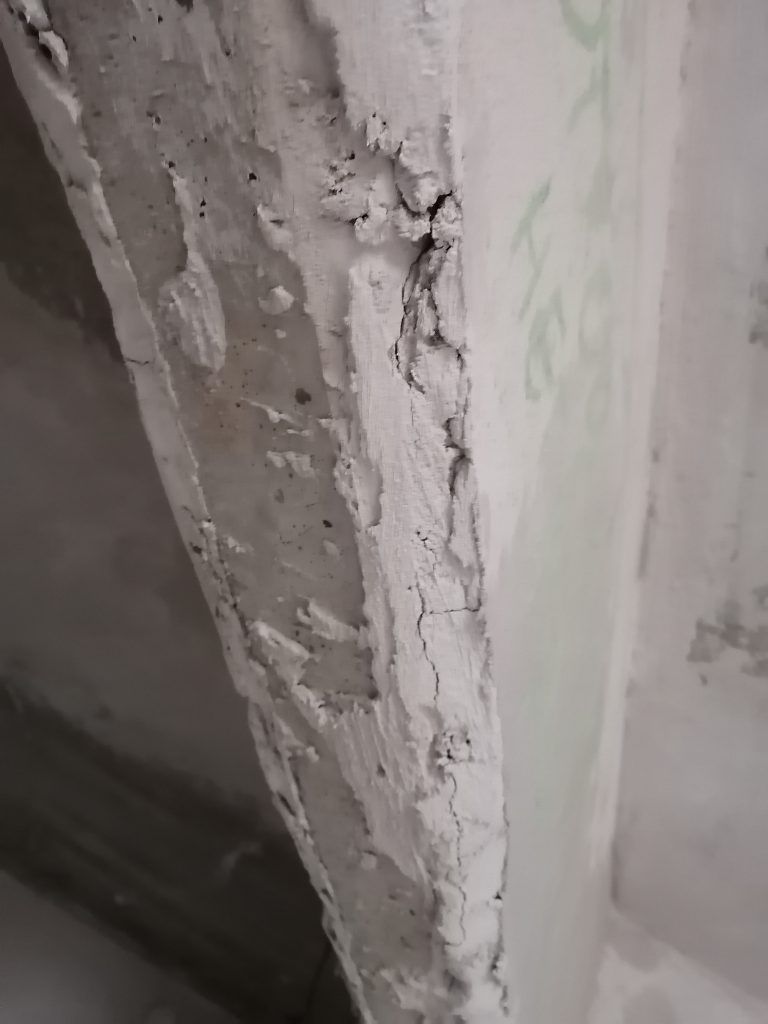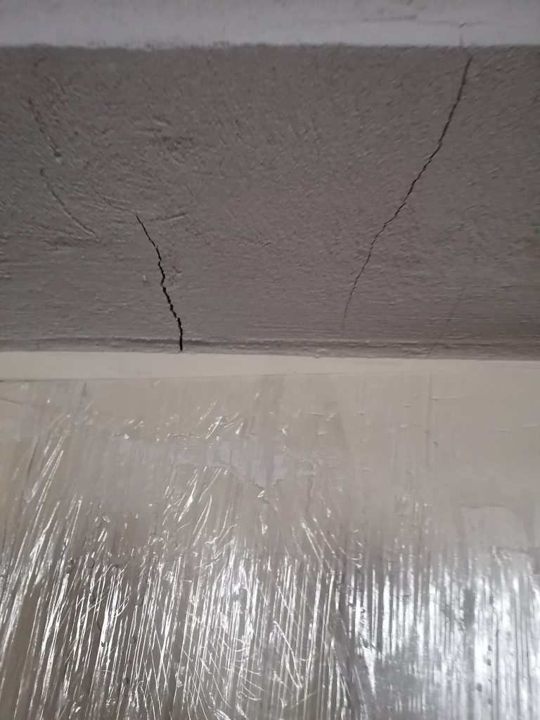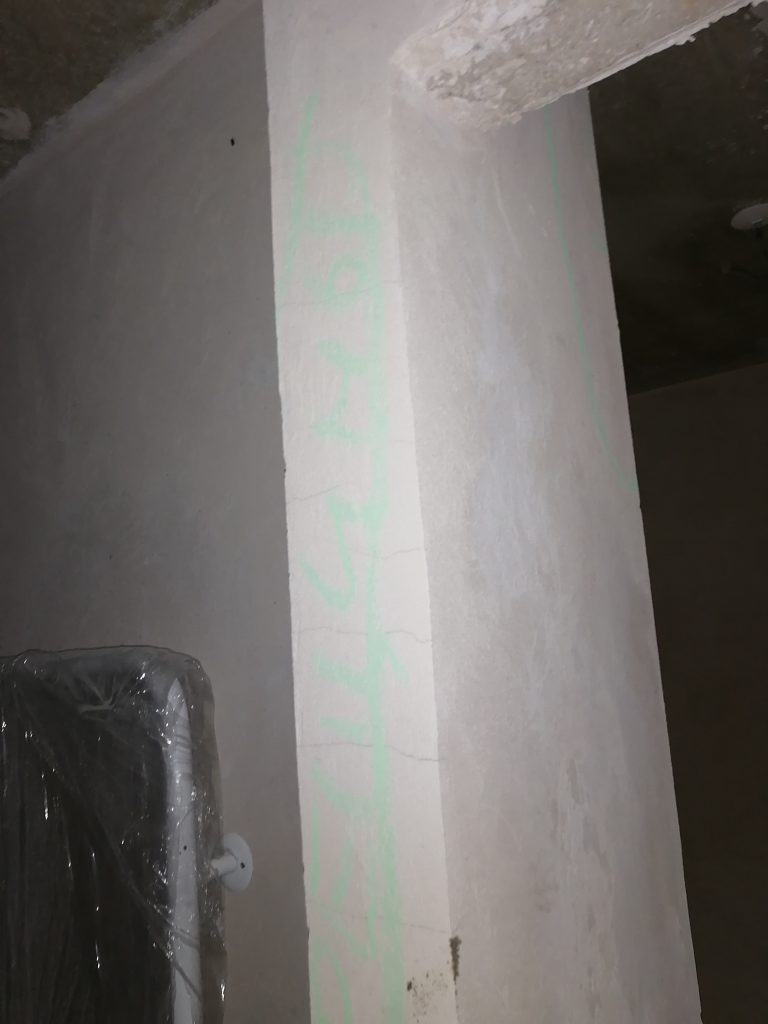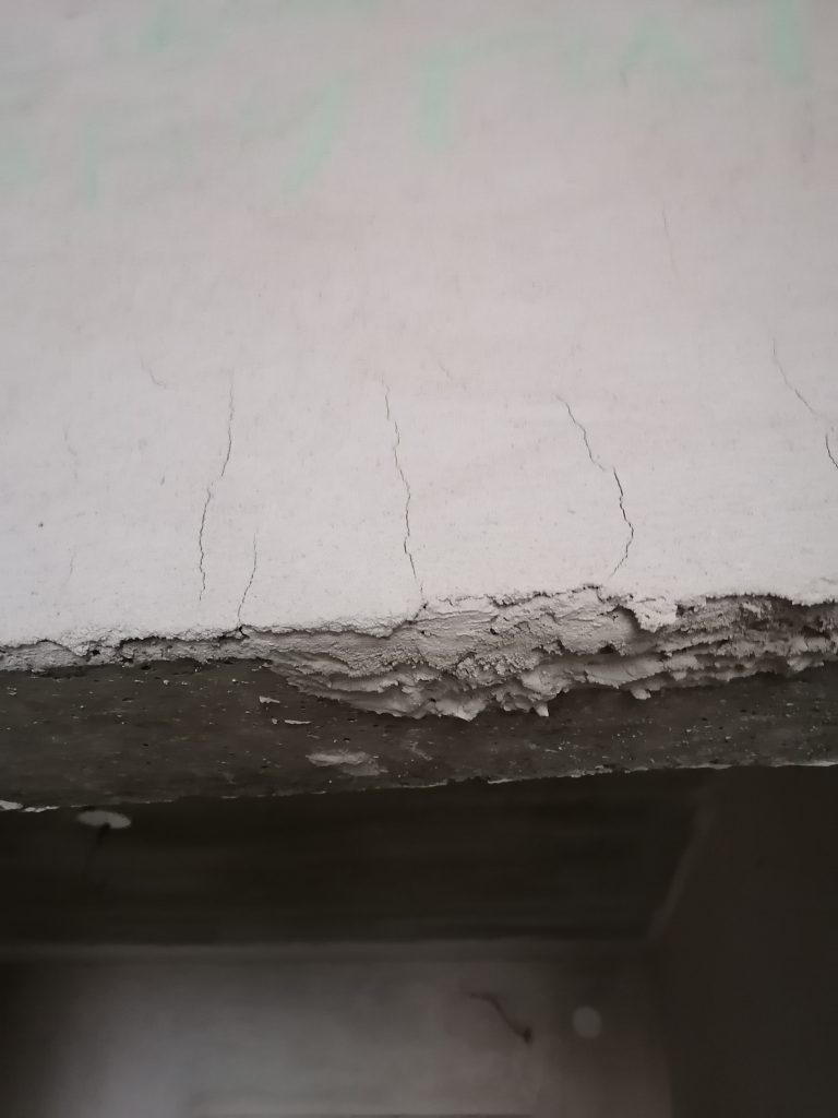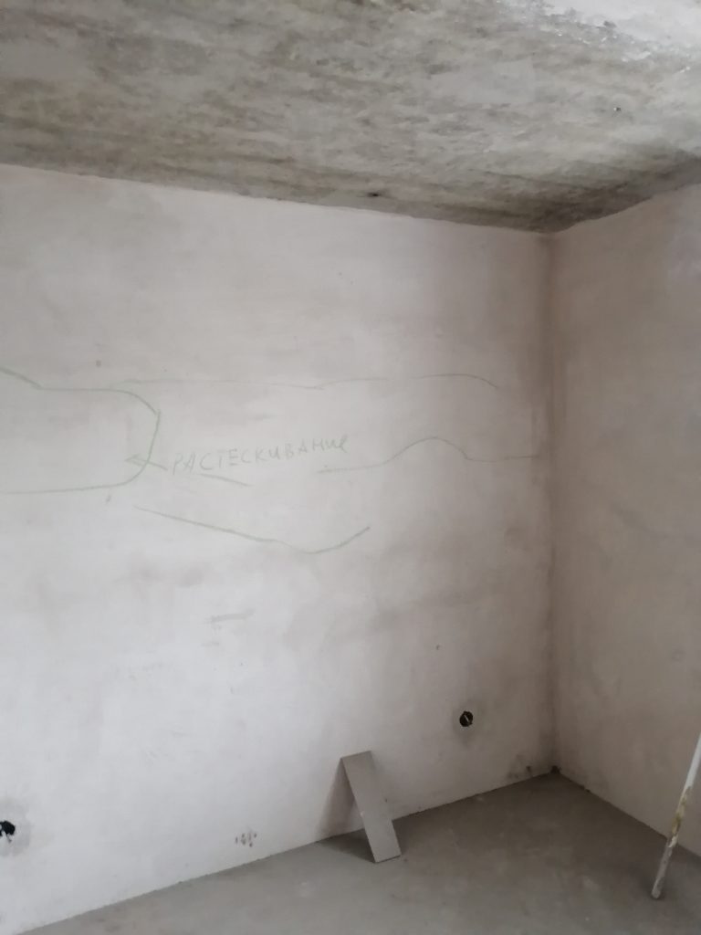 Происходит растрескивание штукатурного слоя. Ряд участков с неудовлетворительной адгезией штукатурного слоя (приемка квартир в Минской области)