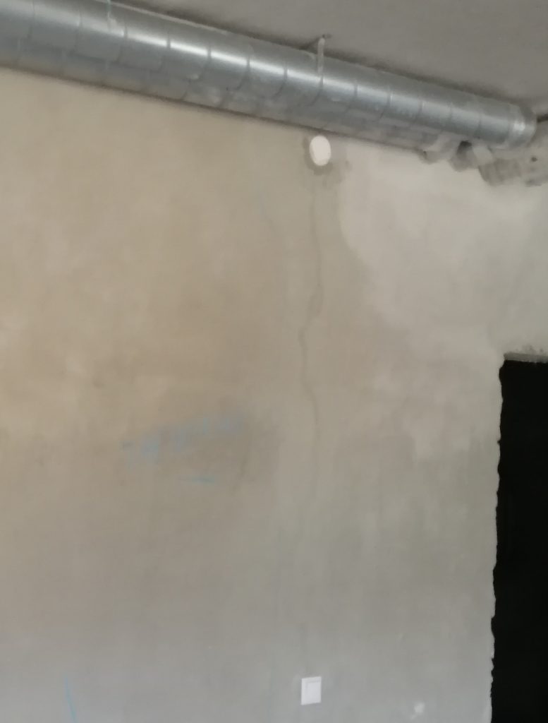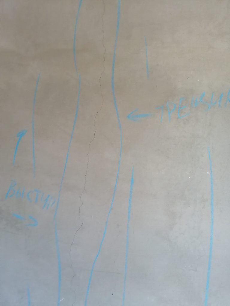 Застройщик заявил, что в квартире улучшенная штукатурка, однако имеется множество локальных неровностей, превышающих нормативные значения . На поверхности стен обнаружили 14 участков с трещинами (их расположение характерно при передачи давления от перекрытия на перегородки, в следствии наличия жестких участков в узлах примыкания перегородок к перекрытию).