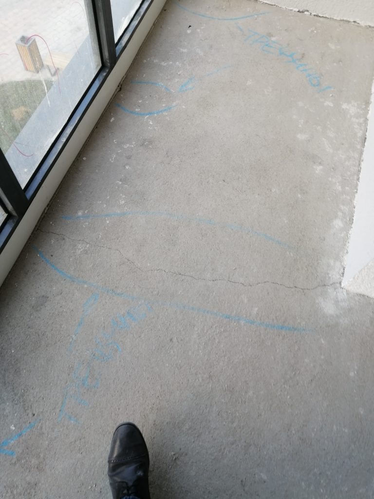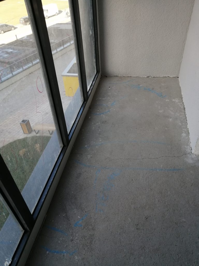 В стяжке пола, также обнаружили трещины. Расшивку демпферных швов не произвели.