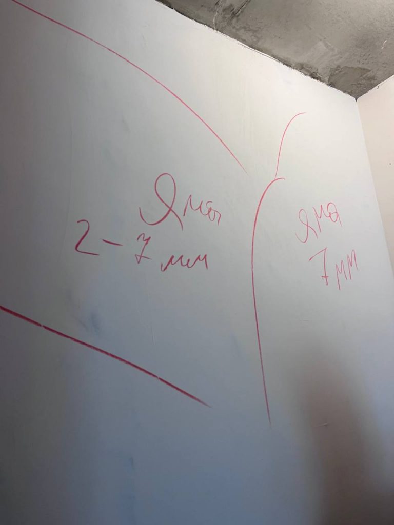 При приемке строительных работ даже без применения инструмента видны тени и блики при естественном освещении. Это указывает на неровность поверхности. Проведение измерений показало полное несоответствие выполненных строительных работ, как заявленным требованиям, так и требованиям, предъявляемым техническими нормативными правовыми актами к данным работам.